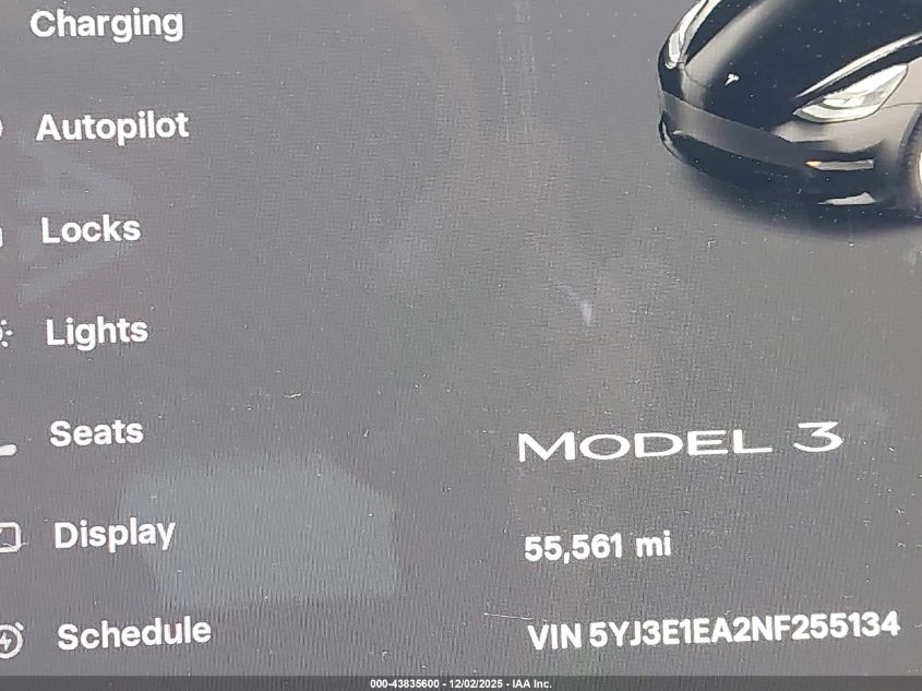 2022 TESLA MODEL 3 2022 року Электрический, U, Задний привод, vin - 5YJ3E1EA2NF255134 из США