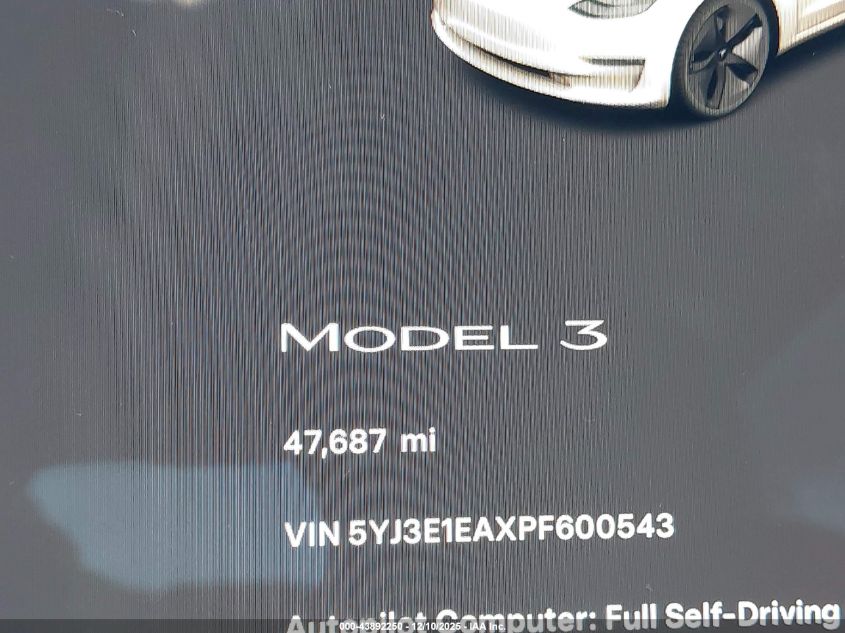2023 TESLA MODEL 3 2023 року Электрический, U, Задний привод, vin - 5YJ3E1EAXPF600543 из США