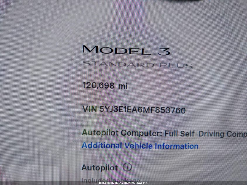 2021 TESLA MODEL 3 2021 року Электрический, U, Задний привод, vin - 5YJ3E1EA6MF853760 из США