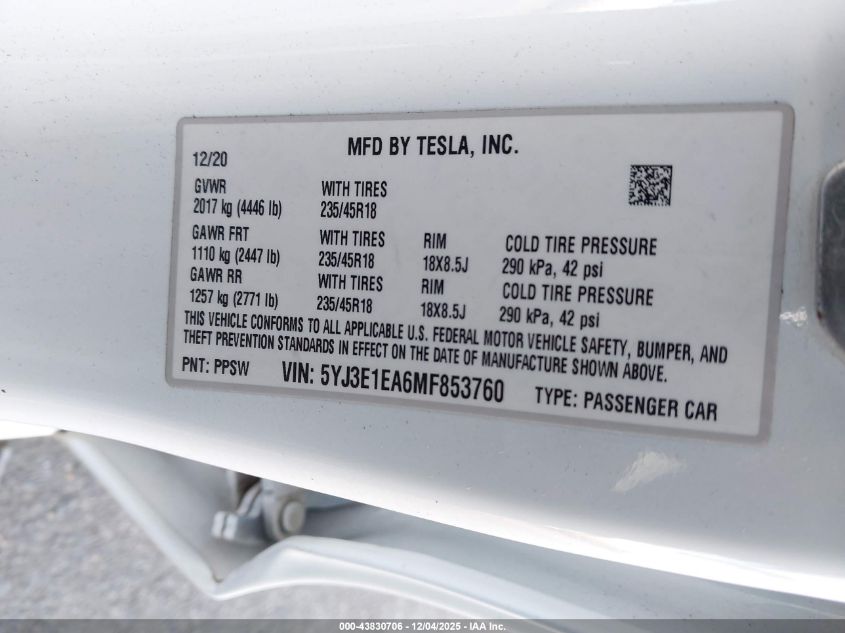 2021 TESLA MODEL 3