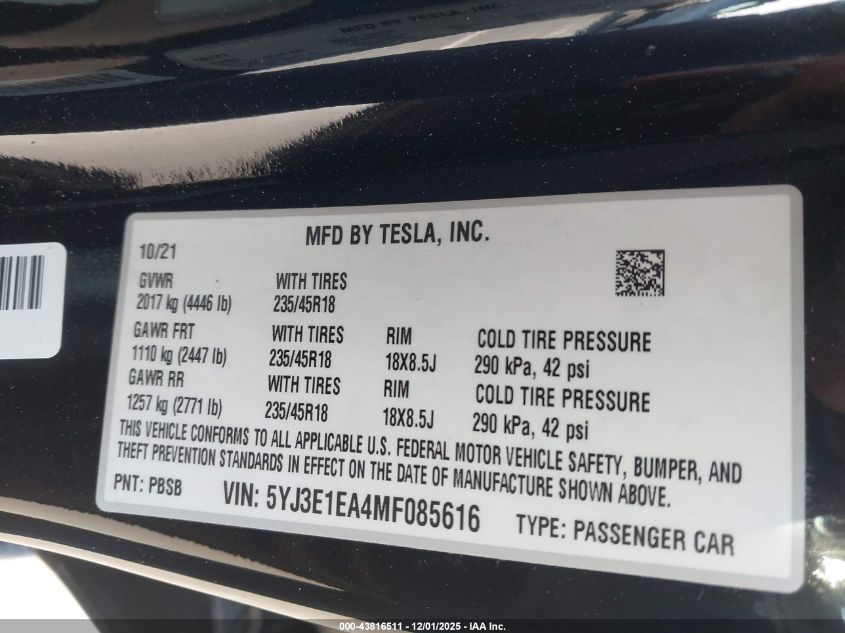 2021 TESLA MODEL 3