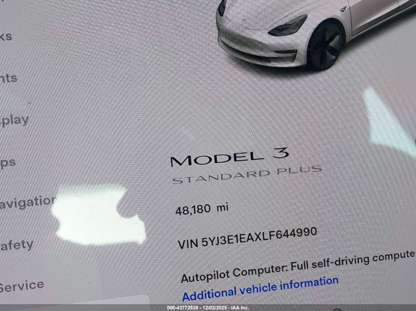 ГлавнаяTESLAMODEL 32020TESLA MODEL 3 STANDARD RANGE PLUS REAR-WHEEL DRIVE/STANDARD RANGE REAR-WHEEL DRIVE