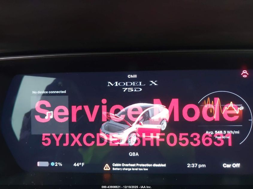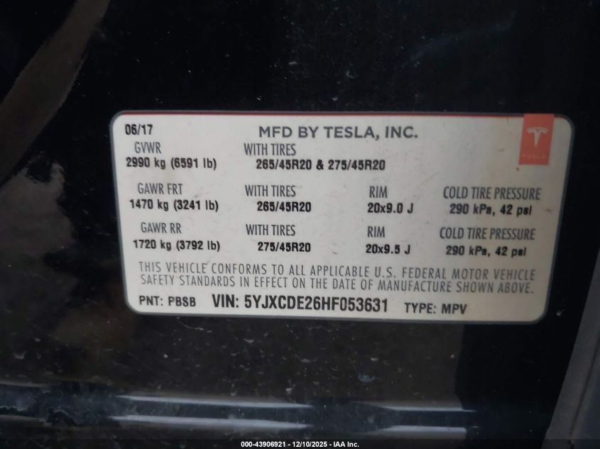2017 TESLA MODEL X 2017 року Электрический, U, Полный привод, vin - 5YJXCDE26HF053631 из США