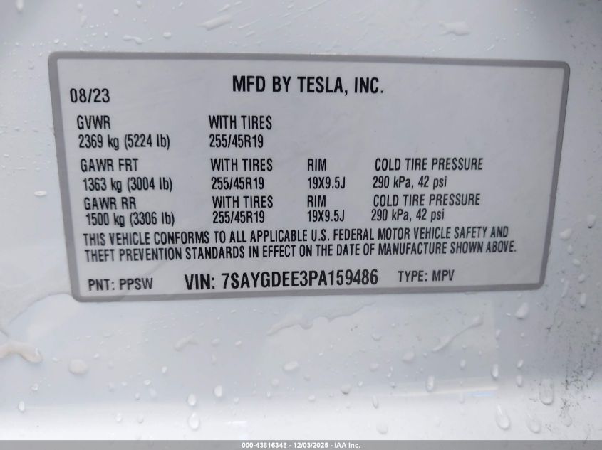 2023 TESLA MODEL Y 2023 року Электрический, U, Полный привод, vin - 7SAYGDEE3PA159486 из США