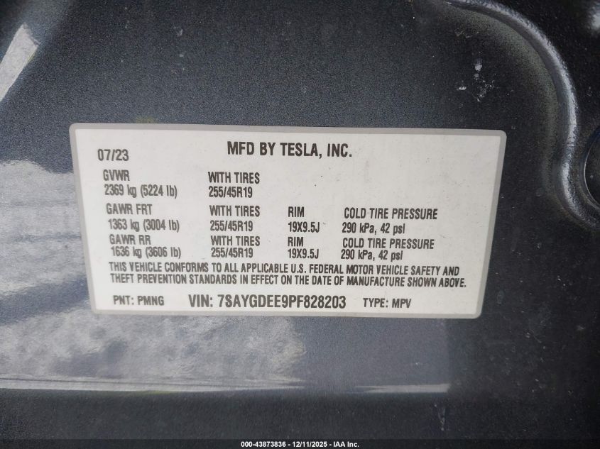 2023 TESLA MODEL Y 2023 року Электрический, U, Полный привод, vin - 7SAYGDEE9PF828203 из США