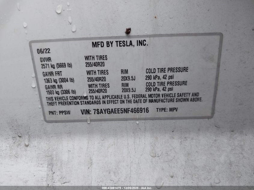 2022 TESLA MODEL Y 2022 року Электрический, U, Полный привод, vin - 7SAYGAEE5NF466916 из США