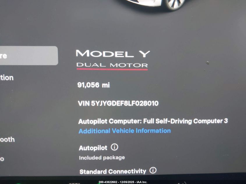 2020 TESLA MODEL Y 2020 року Электрический, U, Полный привод, vin - 5YJYGDEF8LF028010 из США
