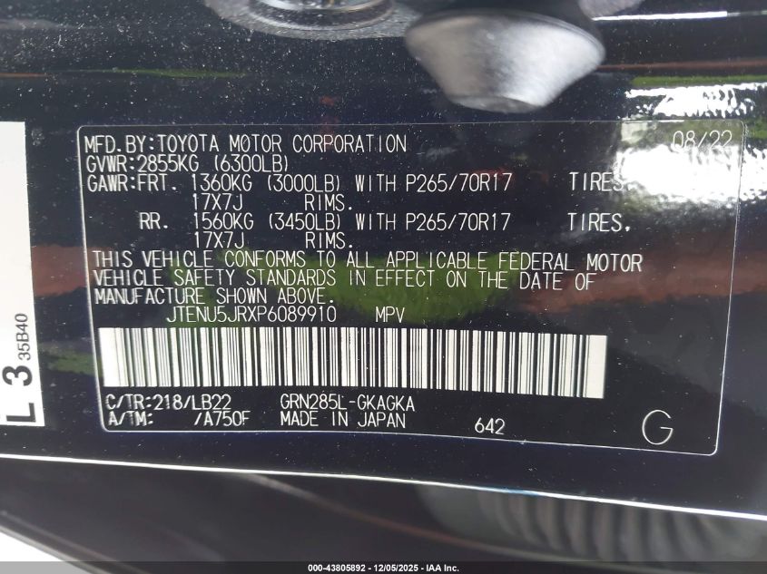 2023 TOYOTA 4RUNNER 2023 року Бензин, 4.0, Полный привод, vin - JTENU5JRXP6089910 из США