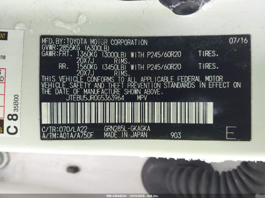 2016 TOYOTA 4RUNNER SR5