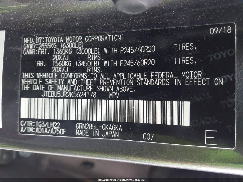 Цвет СерыйЦилиндры 6Привод Полный приводVIN JTEBU5JR2K5624178Состояние Заводится и едет (проверено)Повреждения Передняя или задняя AutoRIA