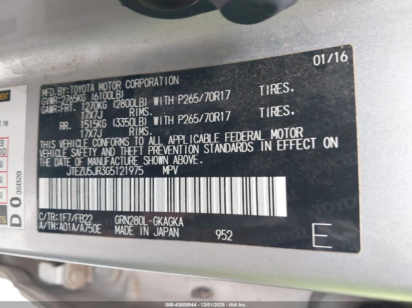 2016 TOYOTA 4RUNNER SR5