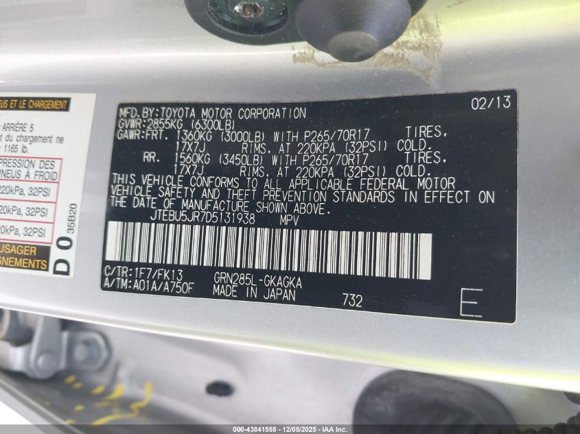2013 TOYOTA 4RUNNER 2013 року Бензин, 4.0, Полный привод, vin - JTEBU5JR7D5131938 из США