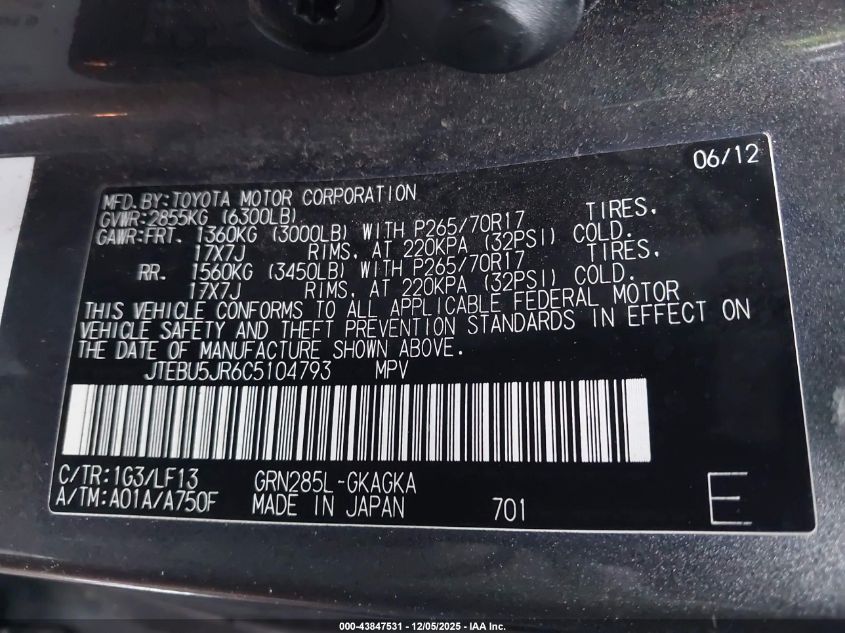 2012 TOYOTA 4RUNNER SR5
