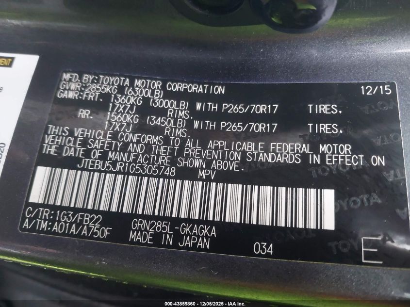 2016 TOYOTA 4RUNNER SR5/SR5 PREMIUM