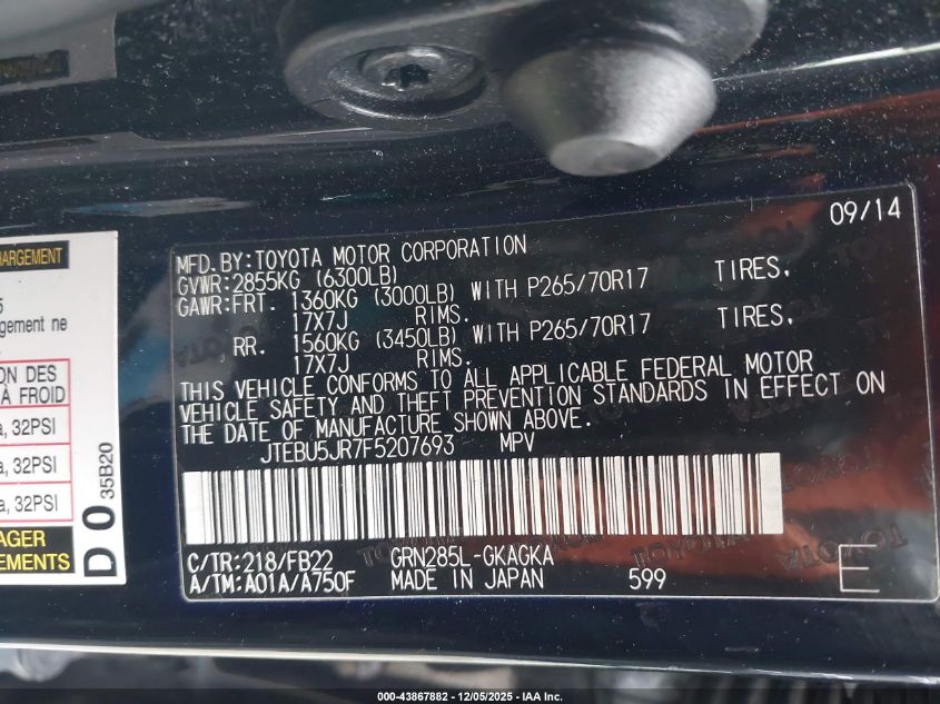 2015 TOYOTA 4RUNNER SR5/SR5 PREMIUM