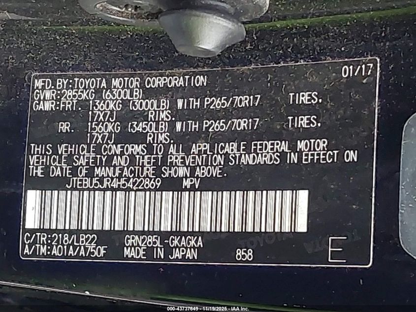 2017 TOYOTA 4RUNNER SR5/SR5 PREMIUM