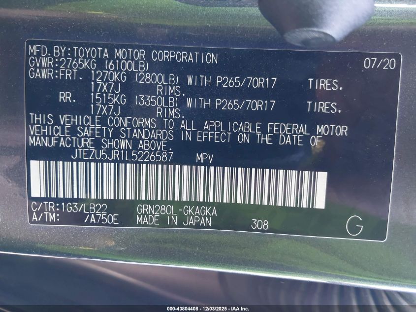 2020 TOYOTA 4RUNNER SR5/SR5 PREMIUM