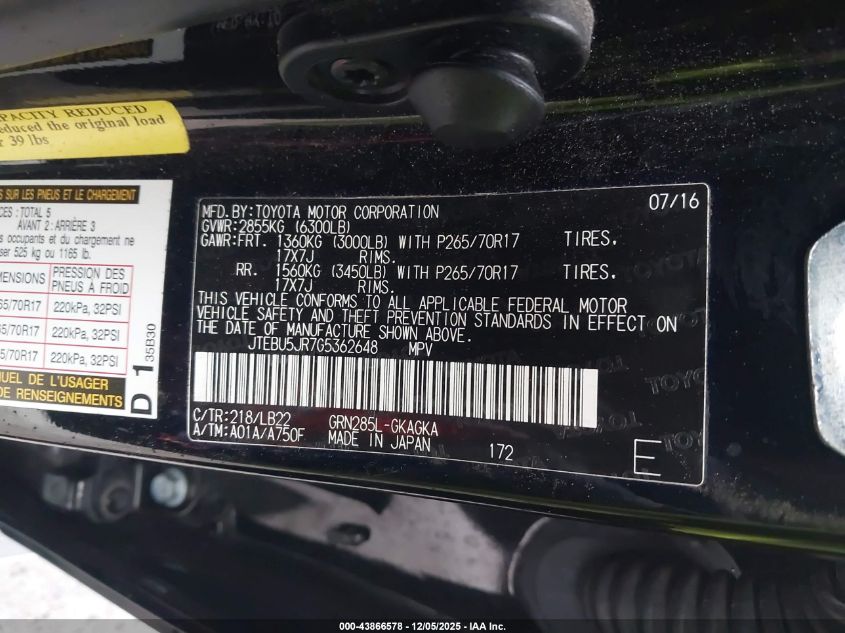 2016 TOYOTA 4RUNNER SR5/SR5 PREMIUM