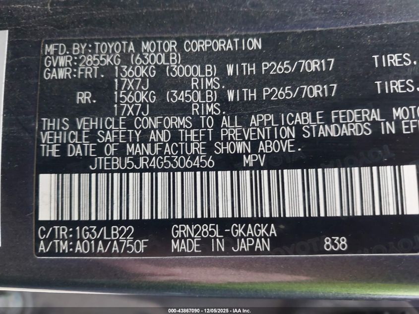 2016 TOYOTA 4RUNNER SR5/SR5 PREMIUM