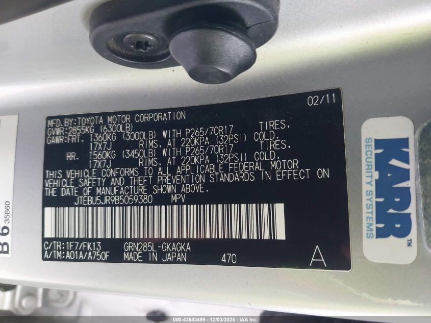 2011 TOYOTA 4RUNNER 2011 року Бензин, 4.0, Полный привод, vin - JTEBU5JR9B5059380 из США