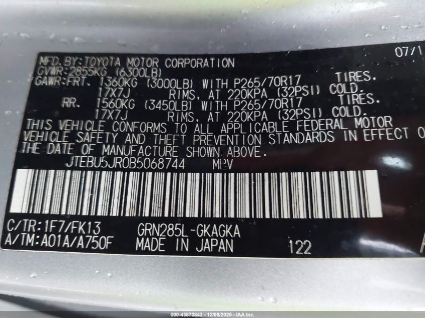 2011 TOYOTA 4RUNNER 2011 року Бензин, 4.0, Полный привод, vin - JTEBU5JR0B5068744 из США
