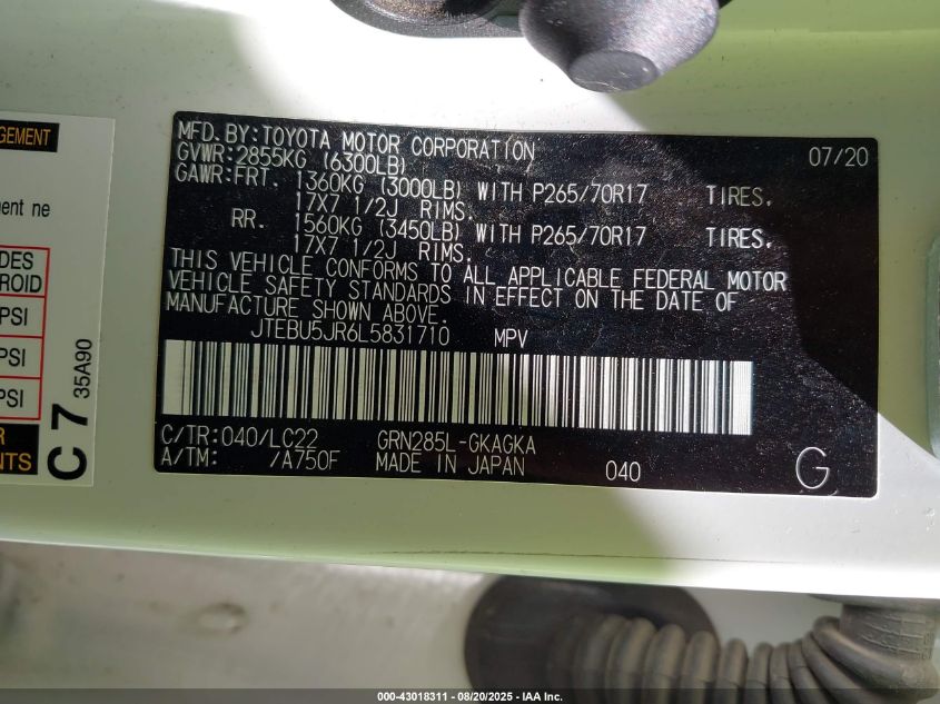 2020 TOYOTA 4RUNNER SR5/SR5 PREMIUM