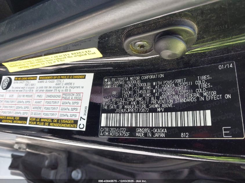 2014 TOYOTA 4RUNNER 2014 року Бензин, 4.0, Полный привод, vin - JTEBU5JR9E5170872 из США