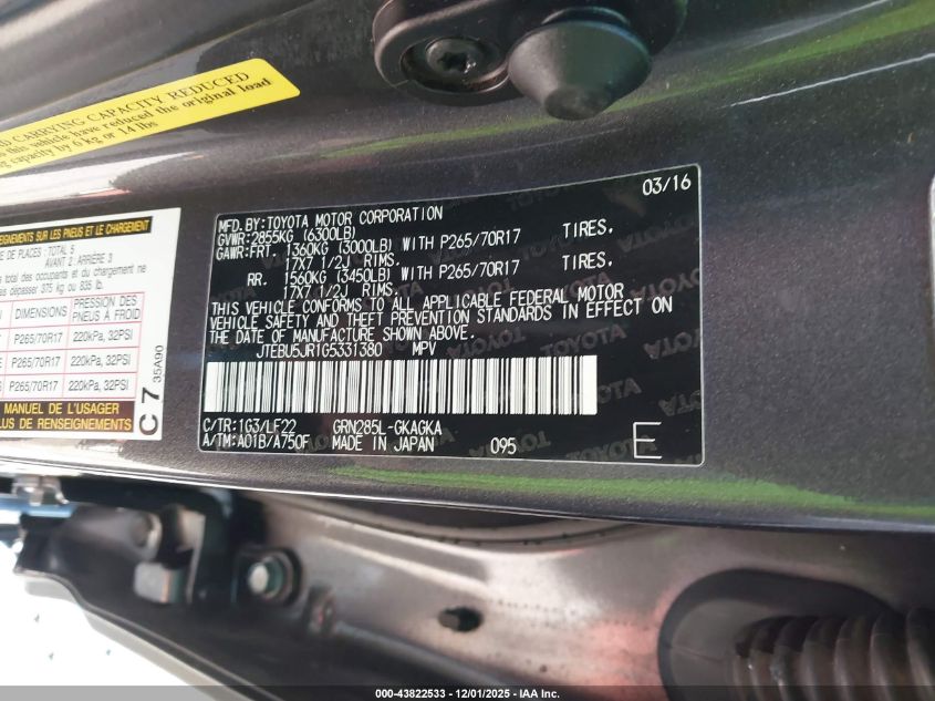 2016 TOYOTA 4RUNNER SR5/SR5 PREMIUM