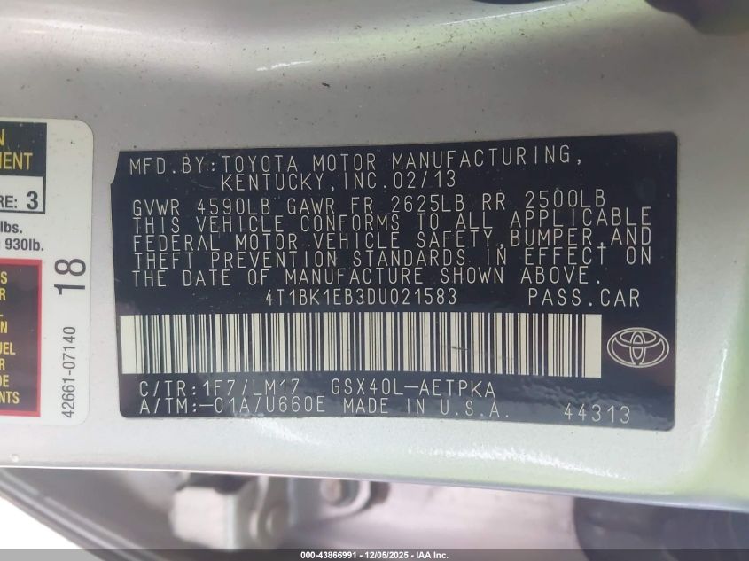 Цвет СеребряныйЦилиндры 6Привод Передний приводVIN 4T1BK1EB3DU021583Состояние СтационарноПовреждения Передняя или задняя AutoRIA