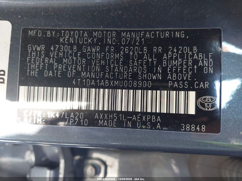 Цвет СинийЦилиндры 4Привод Передний приводVIN 4T1DA1ABXMU008900Состояние СтационарноПовреждения Передняя и задняя AutoRIA