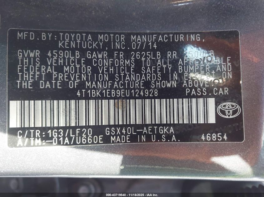 2014 TOYOTA AVALON 2014 року Бензин, 3.5, Передний привод, vin - 4T1BK1EB9EU124928 из США