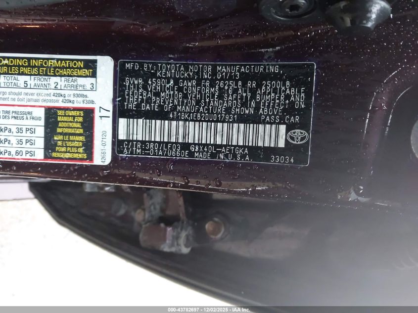 2013 TOYOTA AVALON 2013 року Бензин, 3.5, Передний привод, vin - 4T1BK1EB2DU017931 из США