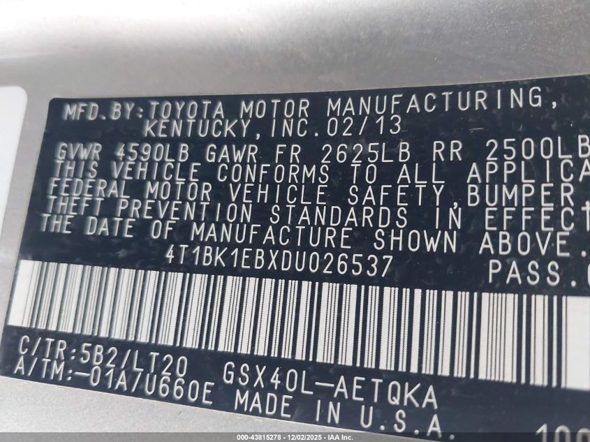 2013 TOYOTA AVALON 2013 року Бензин, 3.5, Передний привод, vin - 4T1BK1EBXDU026537 из США