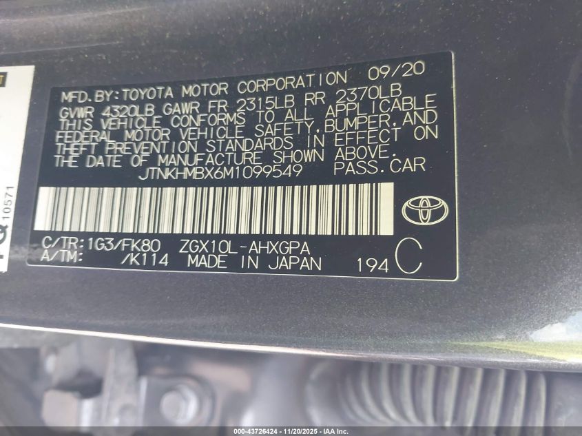 2021 TOYOTA C-HR 2021 року Бензин, 2.0, Передний привод, vin - JTNKHMBX6M1099549 из США