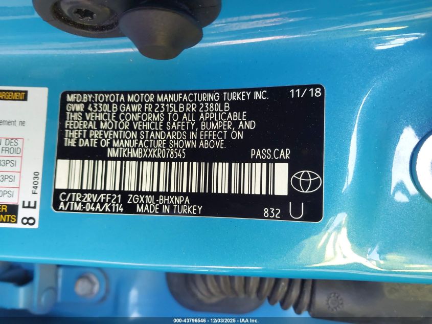 2019 TOYOTA C-HR 2019 року Бензин, 2.0, Передний привод, vin - NMTKHMBXXKR078545 из США