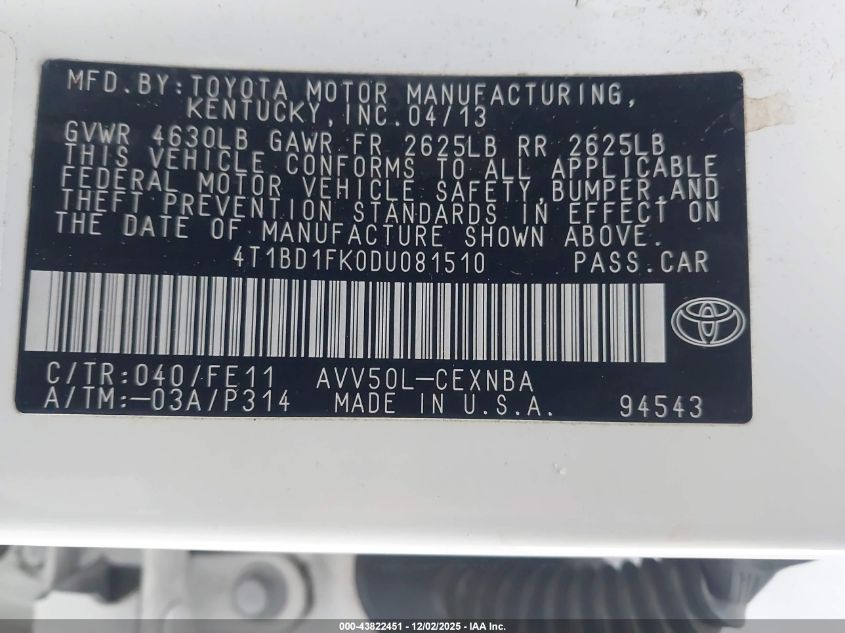 2013 TOYOTA CAMRY HYBRID 2013 року Гибрид, 2.5, Передний привод, vin - 4T1BD1FK0DU081510 из США