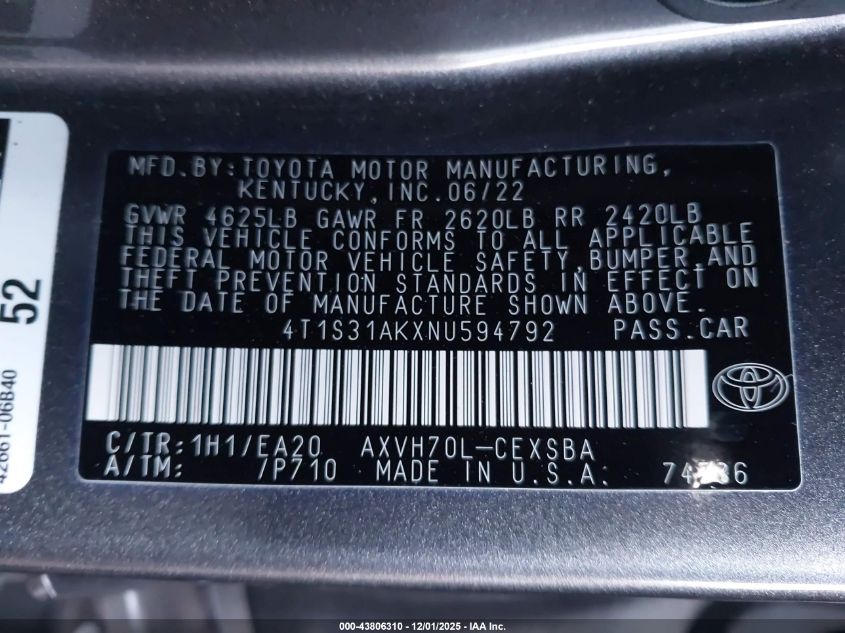 2022 TOYOTA CAMRY HYBRID 2022 року Гибрид, 2.5, Передний привод, vin - 4T1S31AKXNU594792 из США