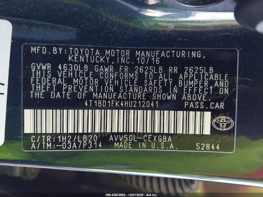 2017 TOYOTA CAMRY HYBRID