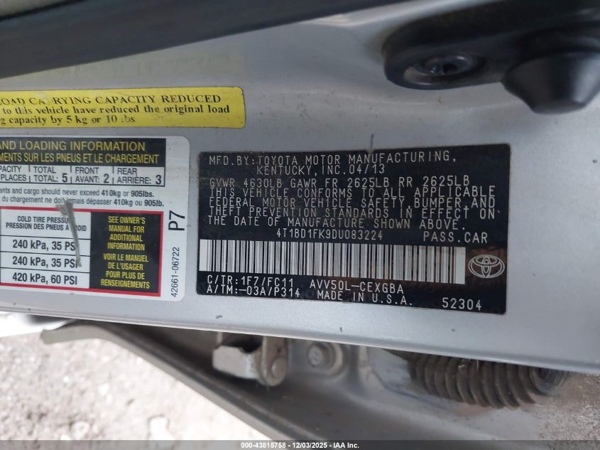 2013 TOYOTA CAMRY HYBRID