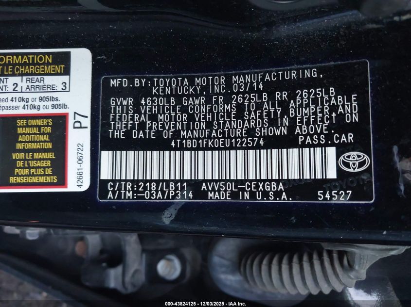 Цвет ЧерныйЦилиндры 4Привод Передний приводVIN 4T1BD1FK0EU122574Состояние СтационарноПовреждения Передняя или задняя AutoRIA