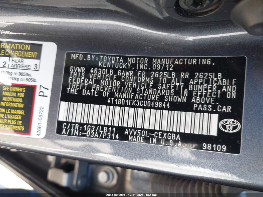 2012 TOYOTA CAMRY HYBRID
