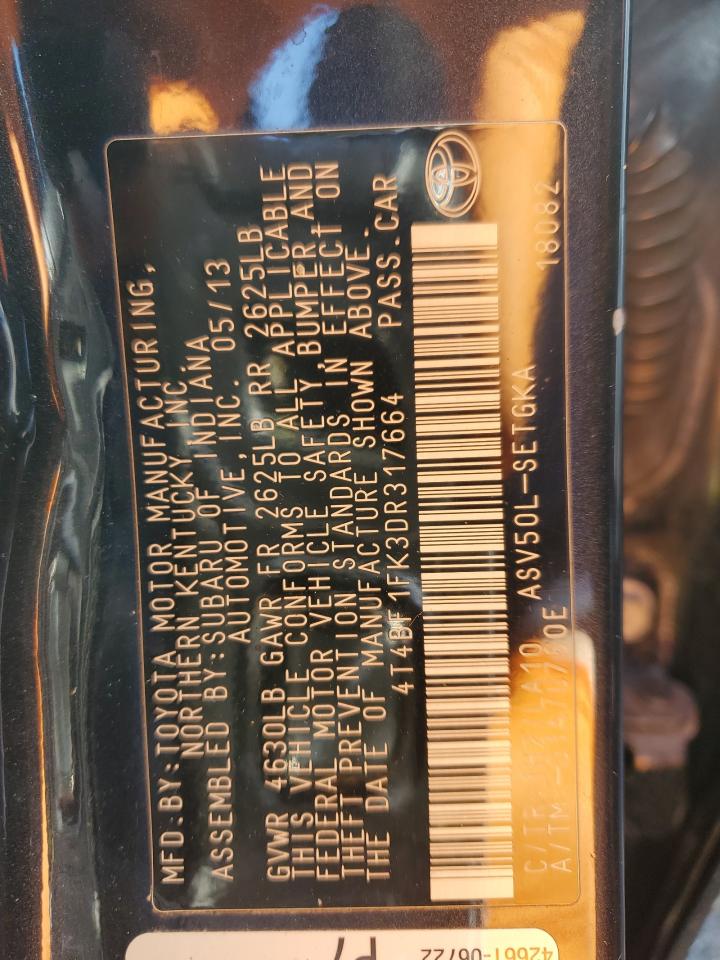 2013 TOYOTA CAMRY 2013 року Бензин, 2.5, , vin - 4T4BF1FK3DR317664 из США