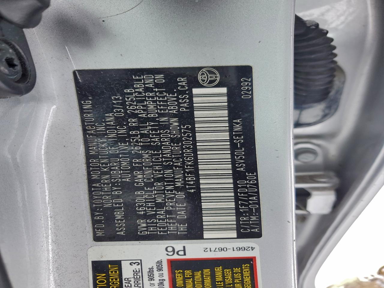 Цвет СерыйЦилиндры 4VIN 4T4BF1FK6DR302575Состояние Заводится и едет (проверено)Повреждения Передняя или задняя AutoRIA