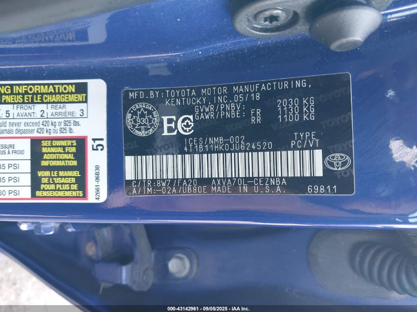 Цвет СинийЦилиндры 4Привод Передний приводVIN 4T1B11HK0JU624520Состояние Заводится и едет (проверено)Повреждения Правая сторонаДата аукциона 2025-12-17