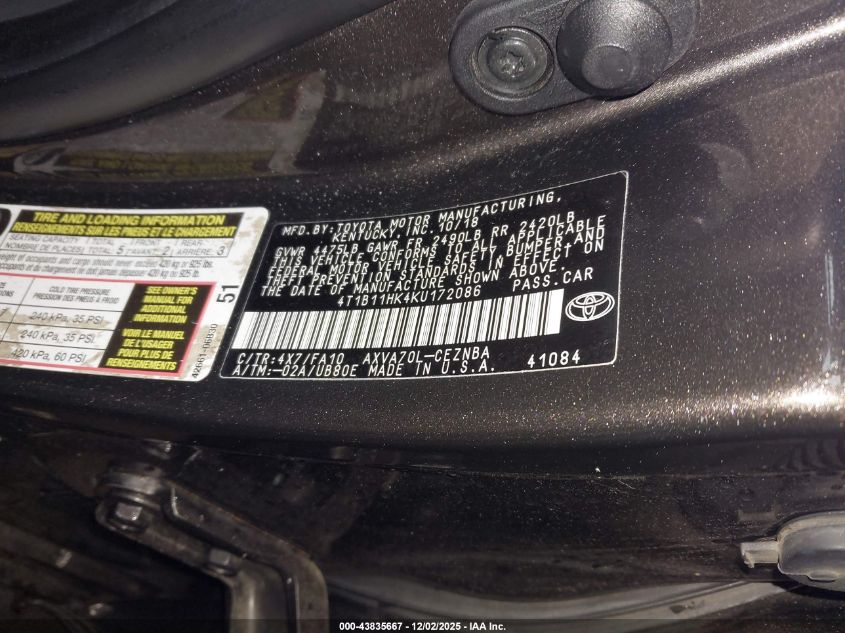 2019 TOYOTA CAMRY 2019 року Бензин, 2.5, Передний привод, vin - 4T1B11HK4KU172086 из США