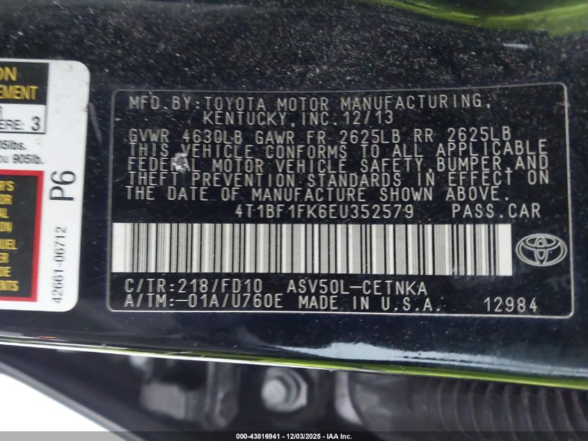 2014 TOYOTA CAMRY 2014 року Бензин, 2.5, Передний привод, vin - 4T1BF1FK6EU352579 из США