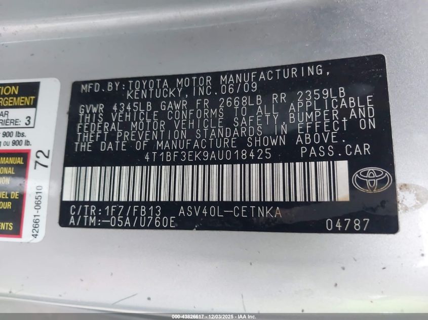 2010 TOYOTA CAMRY 2010 року Бензин, 2.5, Передний привод, vin - 4T1BF3EK9AU018425 из США