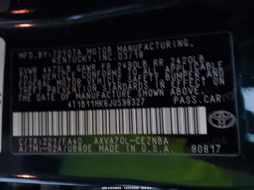 2018 TOYOTA CAMRY L
