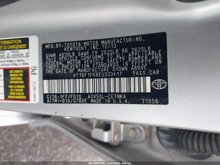 2014 TOYOTA CAMRY 2014 року Бензин, 2.5, Передний привод, vin - 4T1BF1FK6EU333417 из США