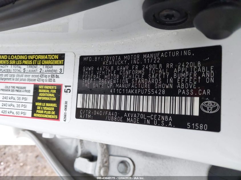 2023 TOYOTA CAMRY 2023 року Бензин, 2.5, Передний привод, vin - 4T1C11AKXPU755428 из США